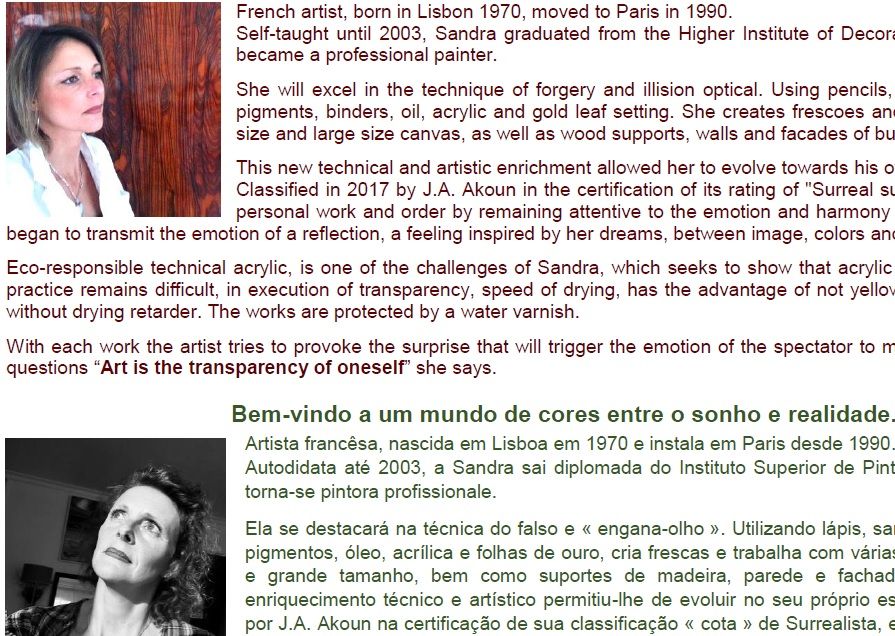 Autodidacte jusqu’en 2003, Sandra sortira diplômée de l’Institut supérieur de peinture décorative de Paris puis devint artiste peintre professionnelle.